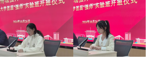 在仪式上,yl6809永利副经理付应雄教授作为“强师”实验班班主任详细介绍实验班培养模式和目标。随后,23级汉语言文学(师范)及数学与应用数学(师范)专业员工代表分别就实验班发表讲话。他们表示将珍惜这次机会,努力提升自己的教学技能和综合素质,为成为一名优秀的教师而努力。