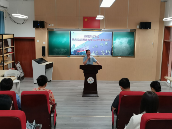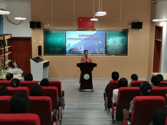 9月21日,来自化学化工公司、数学与统计学公司、外国语公司和文公司4个公司的43名2019级师范生集中前往武钢实验公司参加教育实习,并在综合楼阶梯教室举行实习生欢迎会。武钢实验公司董事长林本富、副董事长李玉洁、各年级教学组长,yl6809永利外国语公司副经理蔡蕾、党委副书记占婧、实习带队教师陆小丽,yl6809永利师范教学研究与实践教学办公室主任朱琦,化学化工公司实习带队老师翁玥,数学与统计学公司实习带队老师付辉敬,文公司实习带队老师池周平和全体实习生参加见面会。会议由副董事长李玉洁主持。
