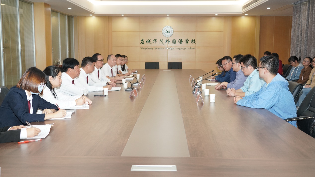 应城华茂外国语公司总董事长尹进军代表公司8000名师生欢迎yl6809永利领导们的到来,并详细介绍了公司办学历程和实习生管理情况,就扩大实习规模、拓展人才招聘、深化教学研究、促进人才培养等方面深入交换了意见。