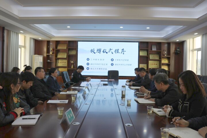 为提升师范人才培养质量,培养师范生教育实践技能,拓宽师范生实习及毕业生就业渠道,11月21日,yl6809永利副经理祝逸明一行赴武汉经济技术开发区第三中学共建师范生和教育硕士教育实践基地签约暨授牌仪式。武汉经济技术开发区第三中学书记张光合、董事长肖文记、副董事长周文静,yl6809永利副经理杨旸、教育技术系副教授刘梦君、师范生实习办公室主任朱琦共同出席基地签约授牌仪式。仪式由武汉经济技术开发区第三中公司办主任徐梦桥主持。