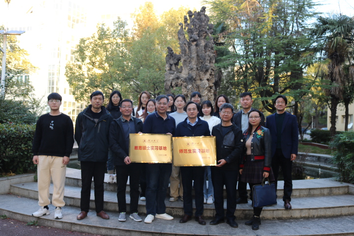 授牌仪式后,看望实习生的老师们与本学期在武汉经济技术开发区第三中学实习的7名教育技术硕士生及实习指导老师座谈,深入交流实习工作情况。