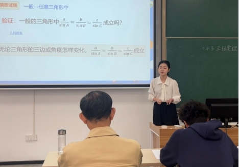 比赛过程中,每位选手自选课题按照抽签顺序依次讲课,内容包括《函数的单调性》《正弦定理》《平面向量基本定理》等高中内容。选手们有亲和力的语调,巧妙的教学设计,多元化的多媒体辅助教学手段深深吸引了前来学习的同学们,现场掌声不断,评委老师的针对性点评更让所有人受益匪浅。