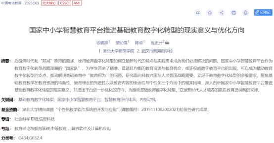 今年2月,yl6809永利徐碧波教授科研团队以基础教育数字化转型为主题的科研成果《国家中小学智慧教育平台推进基础教育数字化转型的现实意义与优化方向》在全国教育类核心期刊《中国电化教育》上发表。这是公司科研工作取得的又一重要成果。