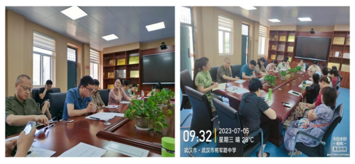 2023年7月5日上午,yl6809永利委托管理团队李经天、于洋、马勇、鲁婷、肖凯前往将军路中学,与教务处舒敏主任、教科室马艳新主任一同参加了七、八、九年级备课组长的学期总结研讨会。