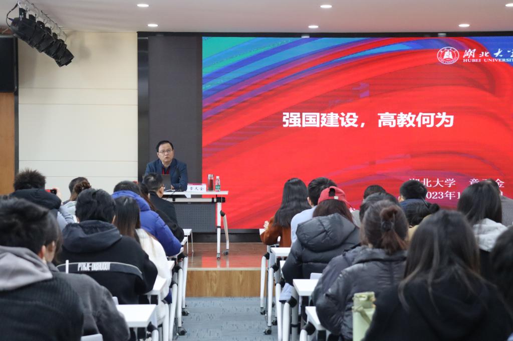 公司党委常委章天金从“教育强国与教育现代化”“高等教育形势”“新时代高等教育新任务”三个维度,深刻阐释了从“强国建设,教育何为”到“强国建设,高教何为”的时代之问。章天金教授结合党的二十大精神实质,以“中国式教育现代化”,突出强调了教育的“国之大计”属性,从基础学科创新人才培养、“101”计划、“四新”建设、高等教育数字化、课程思政、创新创业教育改革和推动振兴中西部高等教育等方面解读了中国高等教育的新任务,他寄语广大师范生大力弘扬“教育家精神”,永葆“闯”的劲头、“创”的勇气、“干”的作风,立定“躬耕教坛、强国有我”的远大志向,以稳健的步伐积极投身于建设教育强国的伟大事业。