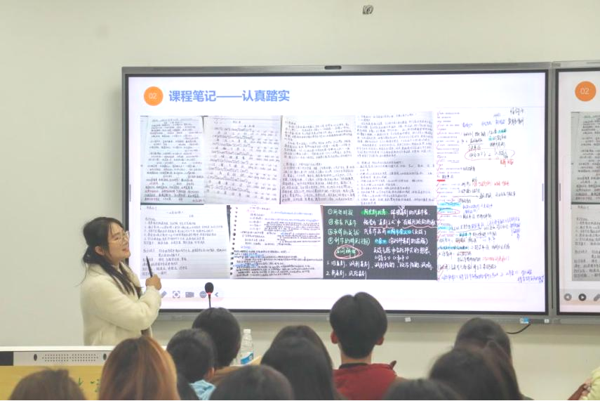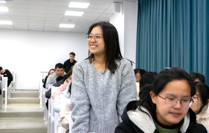 周欣怡则从专业学习方法、学术论文写作、必读书目等方面进行了详细的介绍,并强调要在学习过程中学会主动提高自己的信息搜集能力、独立思考能力、团队协作能力和语言表达能力。