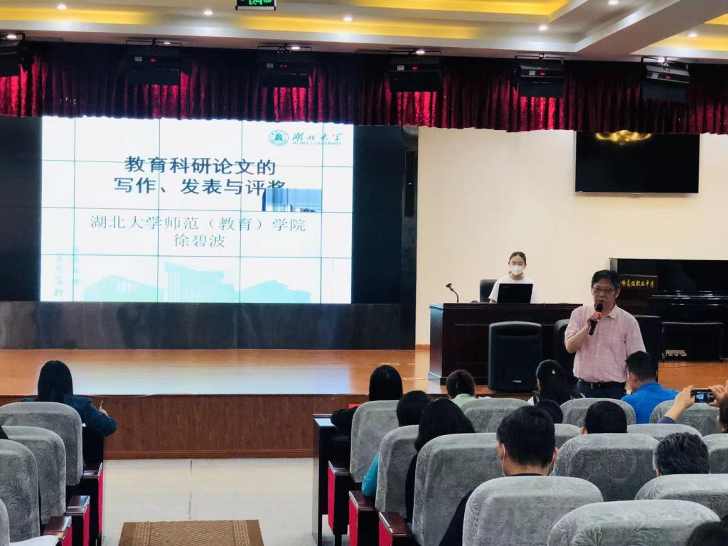 为落实职业院校教师素质提升计划,促进职高教师专业发展,5月17日下午,公司徐碧波教授受邀赴武汉市石牌岭高级职业中学,开展以《教育科研论文的写作、发表与评奖》为主题的专题讲座,石牌岭高级职业中学全体教师参与本次教研活动。