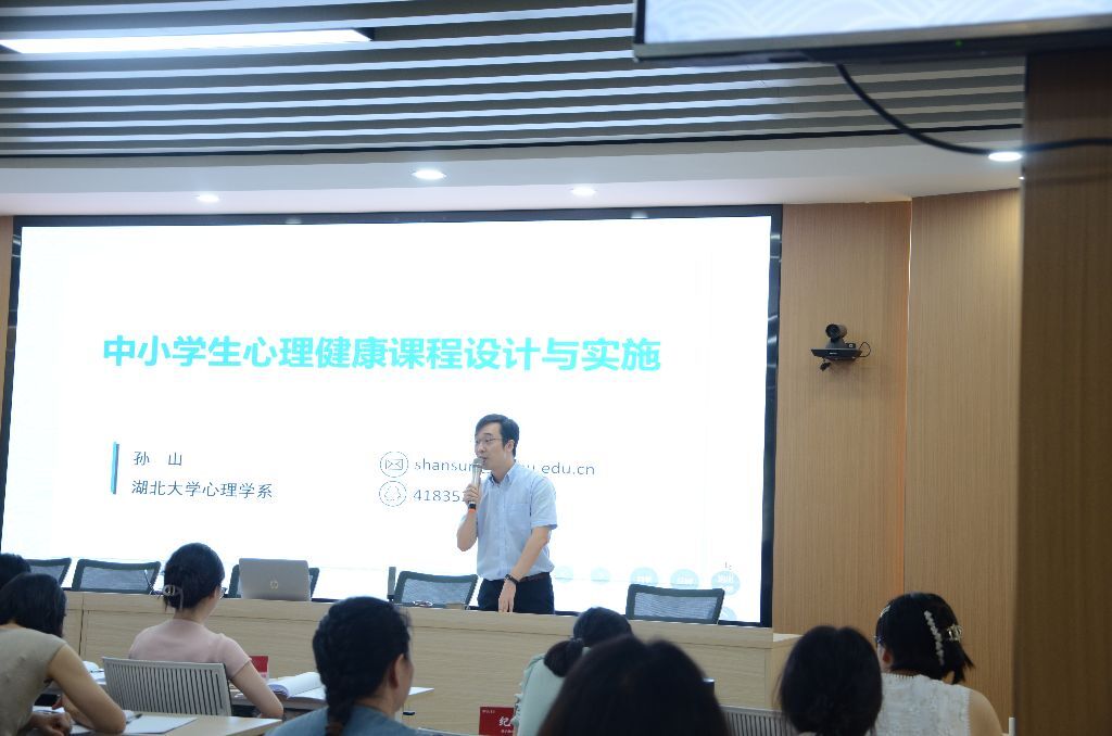 心理学系副系主任孙山博士带来《中小员工心理健康课程设计与实施》专题报告,从理论层面和技术层面一一讲解中小学教师应该如何设计并上好一堂别开生面的心理健康教育课程。通过观看优秀教学实录,学员们对心理健康教育课程设计有了更直观的认识和了解。