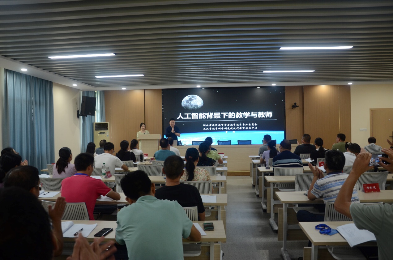 武汉市教科院现代教育技术中心主任雷刚主任的报告《人工智能背景下的教学与教师》,与新高考同频共振,与教育发展携手共进。他结合ChatGPT带来的冲击和挑战,分享了技术赋能下的教学改变,为全体学员敲响了人工智能教学的“警钟”。