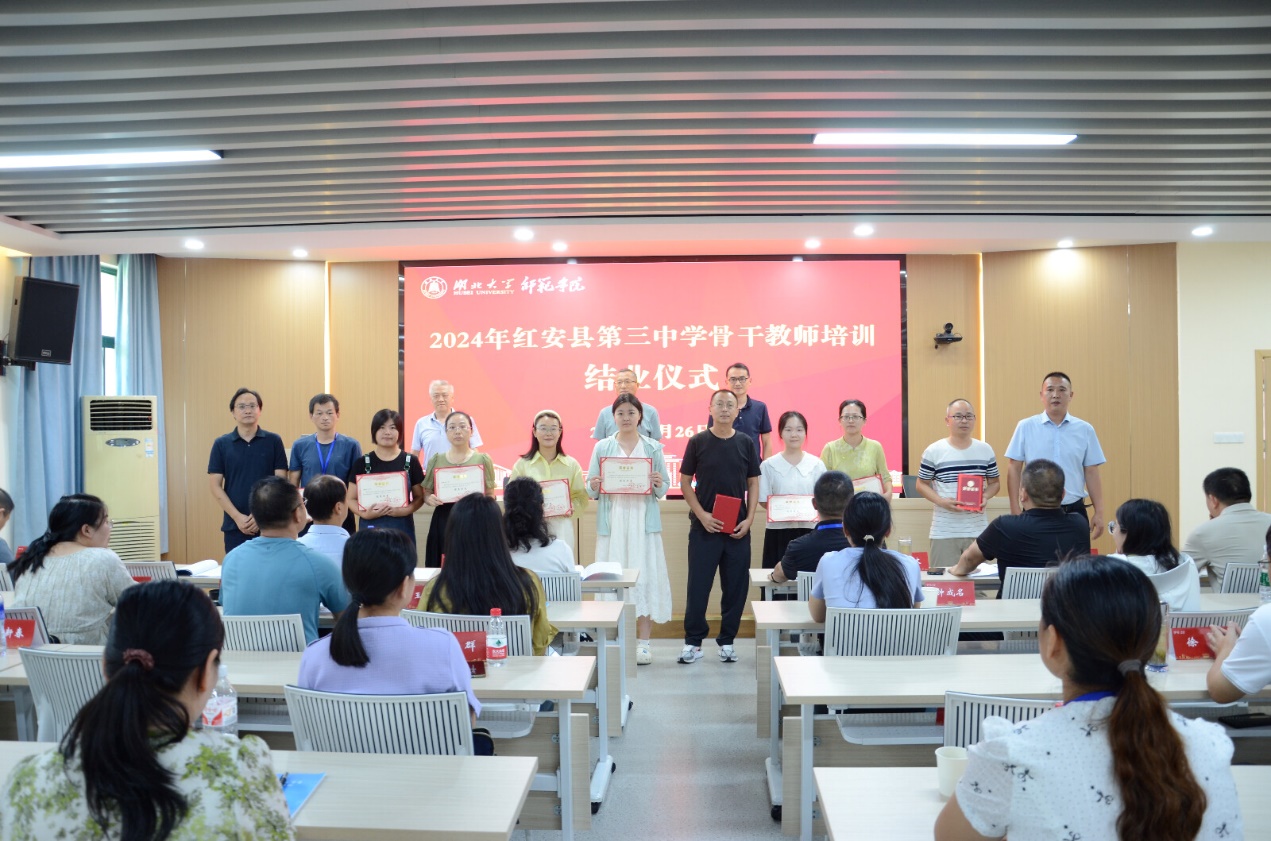 结业典礼上,红安县第三中学张盛涛董事长和杨旸副经理共同为9名优秀学员颁发荣誉证书,这是对他们在培训期间杰出表现的最好认可。