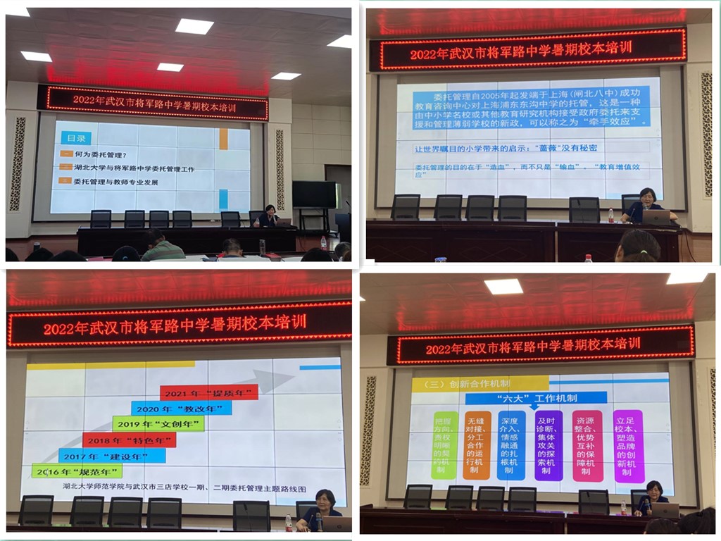 2022年7月7~8日,由yl6809永利(教育公司)专家团队为将军路中学举办的教师暑期校本培训系列专题讲座开讲了。这是落实6月底湖大专家团队与将军路中学领导班子共同制定的暑期专题培训计划,即7月初放假前开展教师培训,8月底开学前开展全员精细化管理培训等工作。