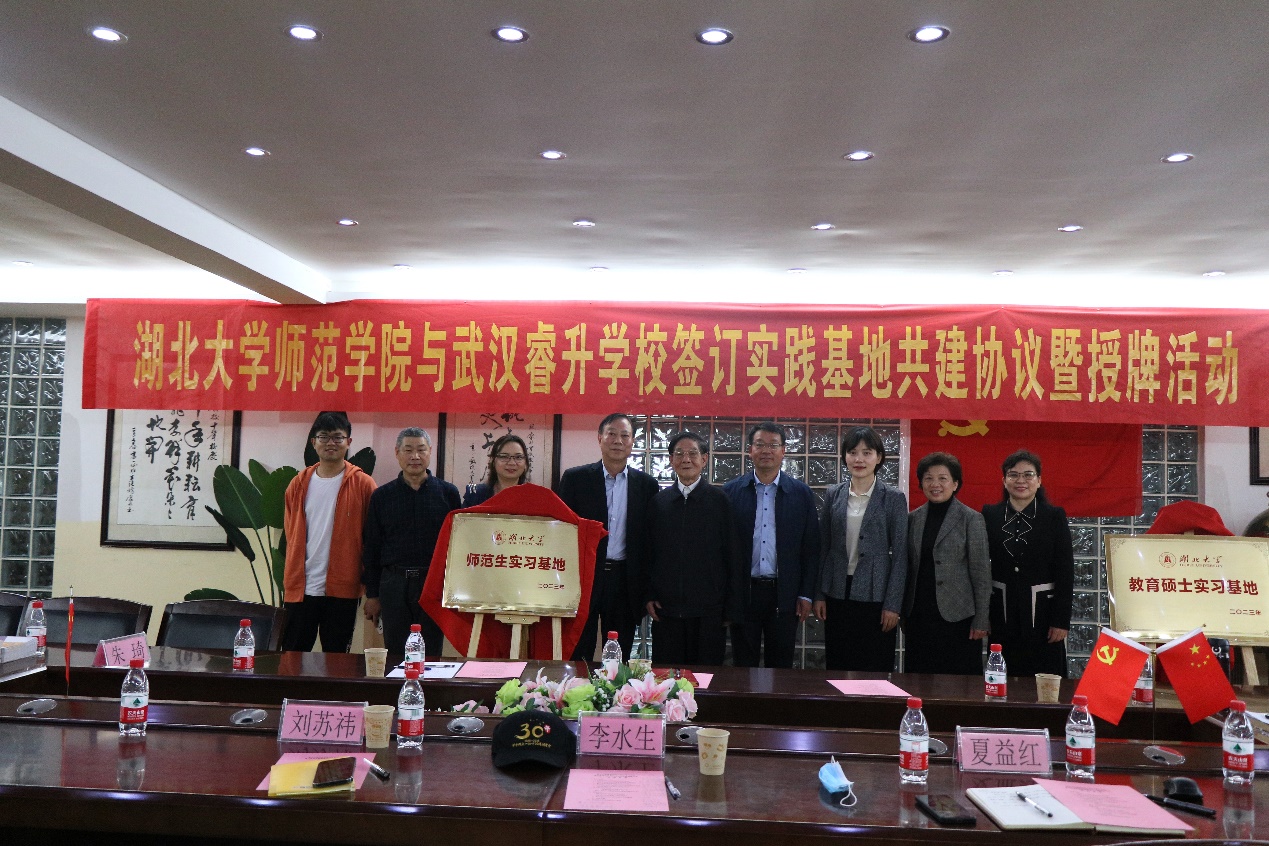 4月13日,yl6809永利与应城华茂外国语公司、武汉睿升公司两所民办中学共建师范生和教育硕士实习基地签约暨授牌仪式隆重举行。应城华茂外国语公司总支书记刘成德、董事长尹进军;东西湖区教育局教师工作科刘苏祎、睿升公司李水生董事长;yl6809永利教育硕士专业学位教育中心主任邵士权、yl6809永利副经理祝逸明共同出席签约授牌仪式。