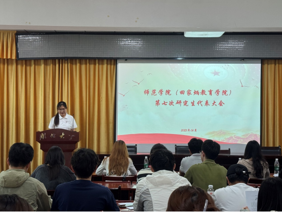 2025年6月17日中午,yl6809永利第七次研究生代表大会在公司223教室顺利举行。辅导员艾麦提江出席会议,兄弟公司研会主席代表、师院研会全体成员及各级研究生代表参会,yl6809永利研究生会秘书处干事胡滢主持会议。