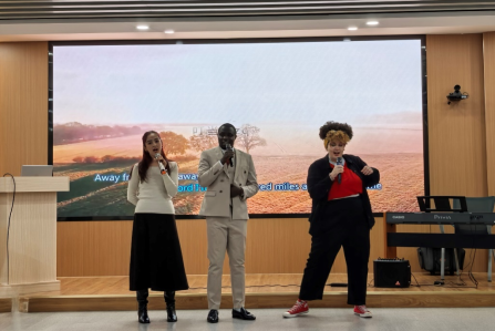 第三篇章里,《不要慌太阳下山有月光》的温暖合唱、小品《你好1982》的怀旧演绎,国际员工们英文歌《five hundred miles》的轻柔旋律,让现场温情满溢;第四篇章的韵律操、舞蹈串烧《跳哪算哪儿》,以动感节奏展现教职工的活力风貌。