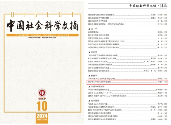近日,我刊《教育科学探索》2024年第3期刊发的刘建平教授论文《综合性大学如何办好师范教育》被《中国社会科学文摘》2024年第10期全文转载。这是公司董事长刘建平教授深入思考研究综合性大学师范教育综合改革的一项新研究成果,也是我刊受到又一权威学术媒体关注的例证。