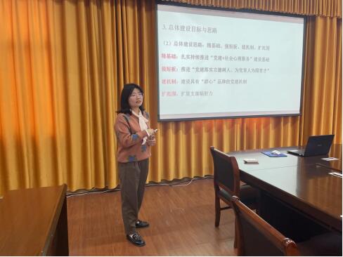 教工第三党支部书记梁娟介绍了本支部情况,并从工作基础、现有短板、建设目标、举措方法、工作计划、重点难点等方面汇报支部建设规划。