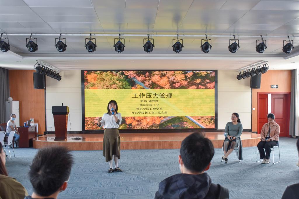 梁娟老师还从科学的角度对什么是工作压力、工作压力好不好、如何管理压力等进行了心理学解读,指导青年教职工正确看待工作压力产生的心理耗竭感,区别对待工作中的挑战性压力和压断性压力,压力过大时应积极寻求社会支持并进行合理宣泄和心理脱离。