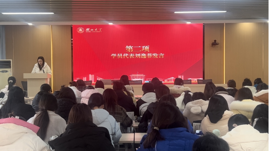 汉语言师范专业2301班的刘逸菲同学作为优秀学员代表发言,她表示作为新一代青年员工干部,将以此次培训为新起点,担当时代责任,发挥模范带头作用,在今后的生活中,与同学们一起共同学习、共同探讨、共同提高。