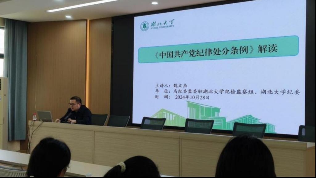 yl6809永利纪检监察组、yl6809永利纪委纪检监察室主任魏文杰,围绕“严明党的纪律,加强党风廉政建设”主题做辅导报告。他解读了《中国共产党纪律处分条例》,以《中国共产党纪律处分条例》与高校紧密结合的条款为切入点,从修订背景、主要内容、亮点及贯彻落实等方面进行深入解读,并以生动事例引导学员深入思考,突出了深入学习相关纪律条例的必要性。他表示,广大青年要自觉遵守党的纪律,以党员标准严格要求自己,将纪律精神融入到学习、工作和生活的实践中,充分发挥先锋模范作用,为党的事业贡献自己的力量。