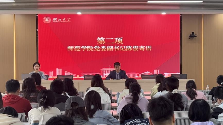 首先,yl6809永利党委副书记陈俊寄语全体学员,希望大家持续弘扬教育家精神,牢记为党育人、为国育才的初心使命。他围绕“师范青年端正学风”这一主题,希望大家早日成为让党放心、让人民满意的新时代好老师。