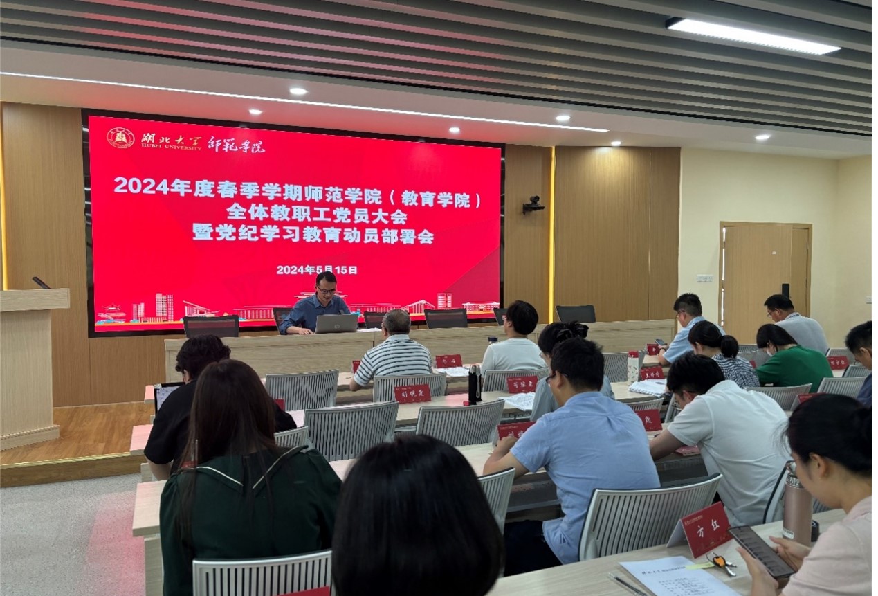 为贯彻落实公司党委关于在全校开展党纪学习教育的精神要求,5月15日下午,公司召开教职工党员大会暨党纪学习教育动员部署会。院领导班子成员、党委委员和全体教师党员参会。会议由公司党委副书记陈俊主持。