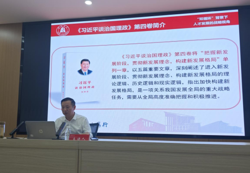 开班仪式结束后,yl6809永利党委宣传部常务副部长何顺进作题为《“双循环”背景下人才发展的战略视角》的首场辅导报告。从“双循环”新发展格局的构建逻辑切入,结合详实数据剖析国际格局深刻演变与国内转型升级叠加的复杂形势,指出人才在破解“卡脖子”难题中的关键作用。他在报告中特别勉励师范学子,既要胸怀“国之大者”把握教育强国建设方向,又要立足专业深耕教学本领,在服务国家战略需求中实现人生价值。