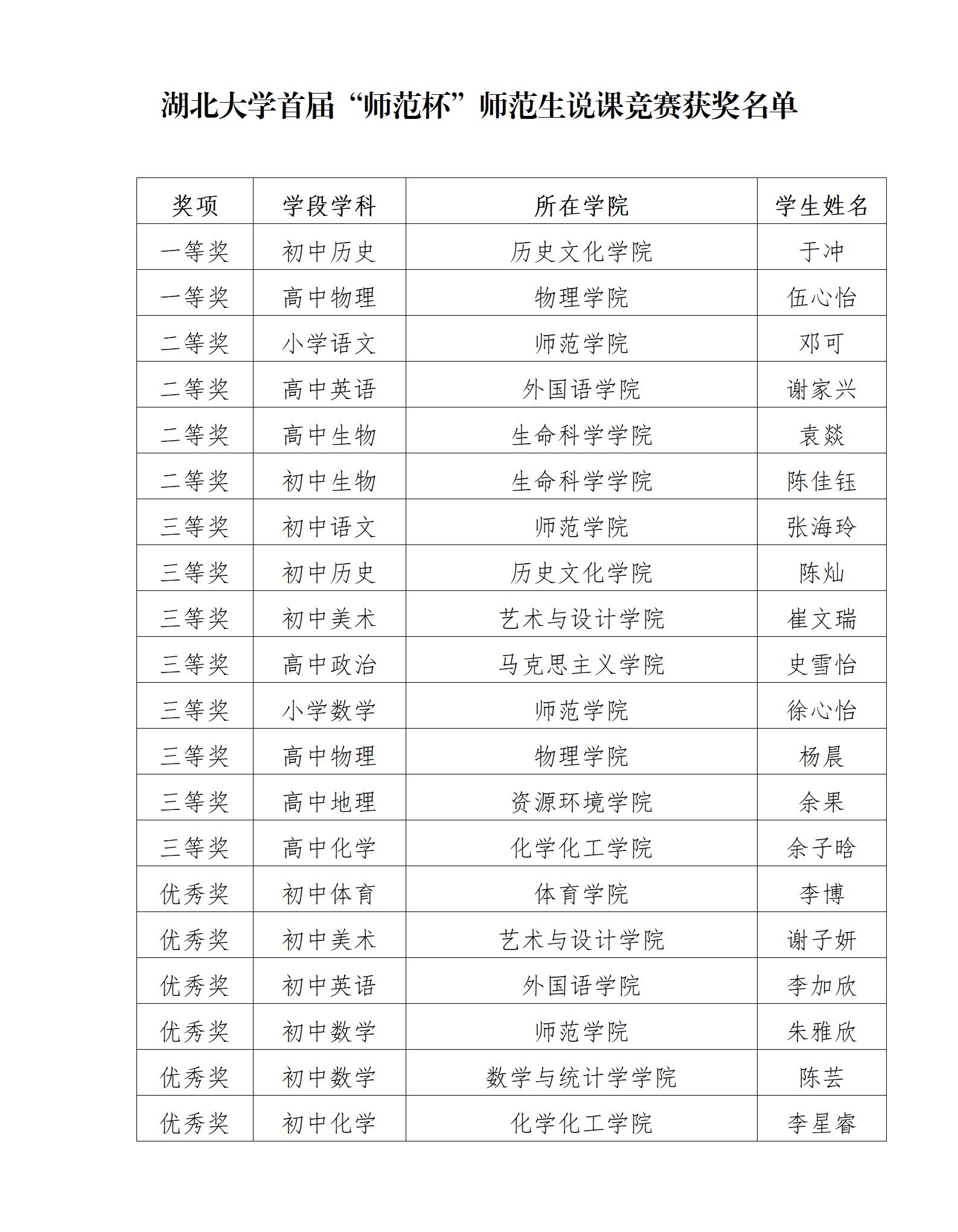 yl6809永利首届“师范杯”师范生说课竞赛获奖名单
